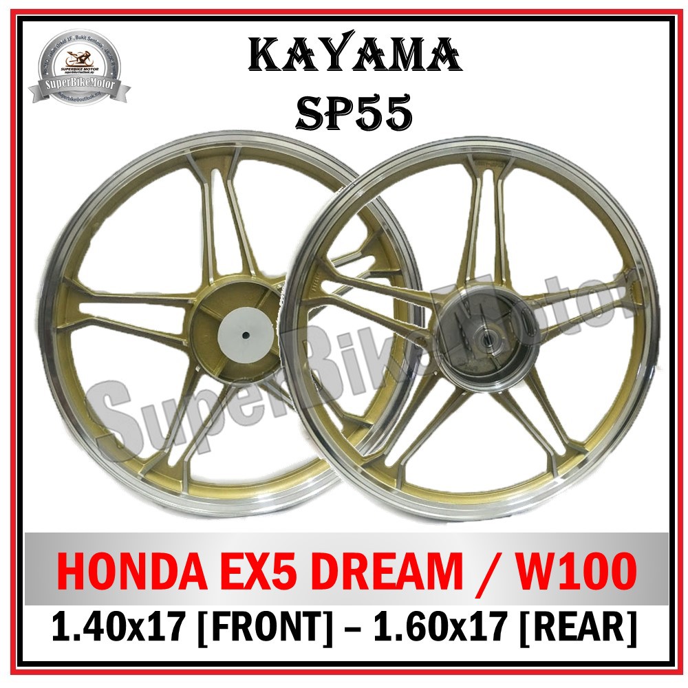 Sport rim yamaha 125z for honda ex5 dream / wave 100. Untuk motor yang nak cantik tu boleh pasang rim sport tapi. Kelebihan dan kekurangan 3 jenis rim motor, rim sport, rim besi dan rim alloy. 100% original kayama product colour :gold high quality product sport rim 6 batang untuk motor honda wave100 / ex5 dream front rim size :